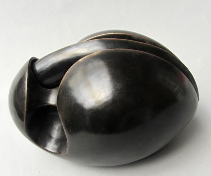 Many of Dilworth’s objects contain once living material as transitional points in awakening consciousness.  Life and death are eternal dance partners and in an intimate, hand held work like Swift (Dunite and Swift) this centre of spiritual gravity can be sensed and felt in the body. Hollows for the fingers on the underside of the object naturally fit the hands with the thumbs resting in mask-like eye sockets. The apex points towards the body with the weight of stone perfectly balanced , like an object for divining with inward directionality. The robust, masculine form feels like a recently discovered artefact from a long lost tribe, its centre of gravity resting in the collective unconscious. Plumbing the depths of the soul for recognition, this work suggests an innate connection with the timeless human need for Creativity and imagination as a source of renewal.