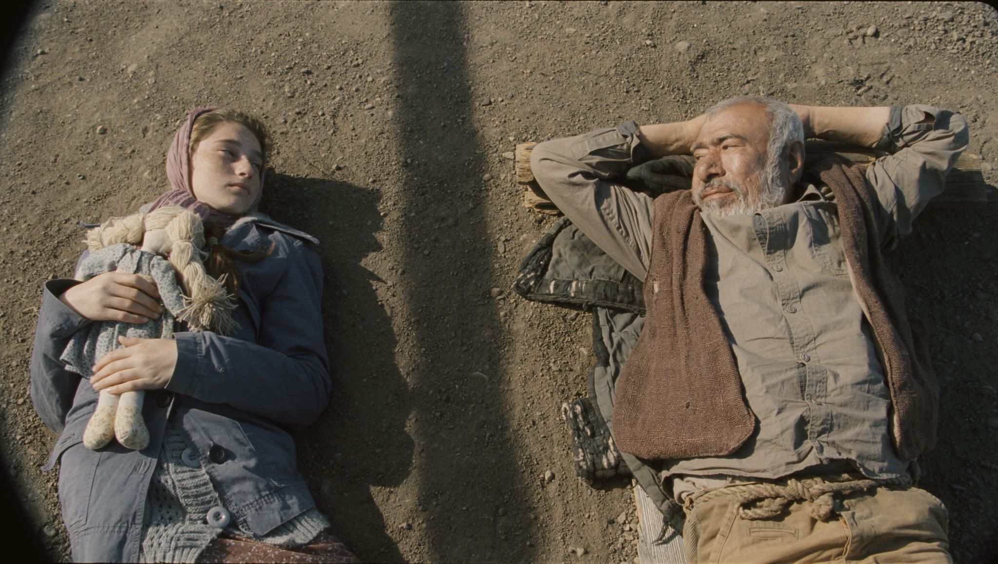 The skills of cultivating this precarious but fertile soil are passed from 70 year old Abga to his granddaughter Asida, creating a seemingly idyllic territory that can only be inhabited in a passing season and can at any moment be entirely swept away. The river brings life, change and patrolling soldiers- it also brings a stranger and the glimmer of a burgeoning relationship between the young man and Asida. As the island becomes a field it evolves as a place to explore human states of youth and age, innocence and experience. The film’s imagery is exquisitely composed, totally captivating and richly associative in meaning. We see Asida framed in relation to the golden, ripening corn or the girl and her grandfather lying on the ground and gazing into the sky, divided by a generational line of shadow. As the timber frame of their hut is constructed it creates an abstract frame against the sky which is also Abga’s window on the world. The peace and simplicity of living entirely as nature dictates could be romanticised but it isn’t. We are left in no doubt that the threat of poverty and potential starvation is what motivates staking a claim on such perilous territory.