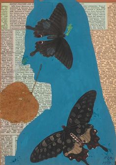 In Eileen Agar’s Butterfly Bride (1938, Gouache and collage, 17 15/16 x 15 3/16 in) the blue Renaissance silhouette of a woman collaged on a ground of text, essentially the cut out of one age informing the reading of another, operates in a self-reflexive way. The encyclopaedic/ historical text, with reference to British colonies, historical rule and exploration works in counterpoint with the beauty and implied fragility of two exotic looking butterflies and the figure of the “bride”, anonymously blue and as collectable as a specimen in an age of discovery. Agar’s collages are frequently not just about the absurdity of images out of their elements, juxtaposed for 30 second amusement or shock value, but are far more texturally layered and sophisticated in terms of ideas and technique. Here the use of collage doesn’t feel random or automatic but considered in terms of dialogue between elements and the wider context of the work, transcending the time it was made. We may well question the freedoms afforded the Butterfly Bride in our own times.