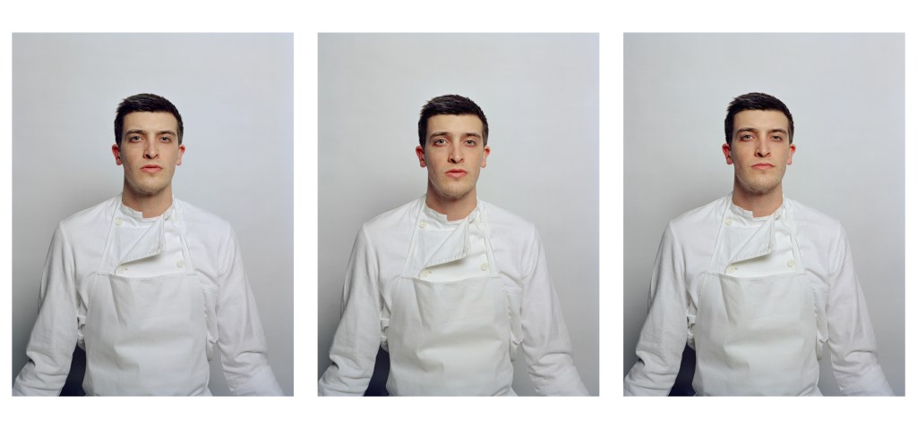 Gerard Jefferson-Lewis. Untitled (Butcher Boys) Portrait Number 472. Photograph, three framed C-type digital prints, each: 59.4 x 84.1 cm. Collection: National Galleries of Scotland, gift of the photographer 2013. © Gerard Jefferson-Lewis.